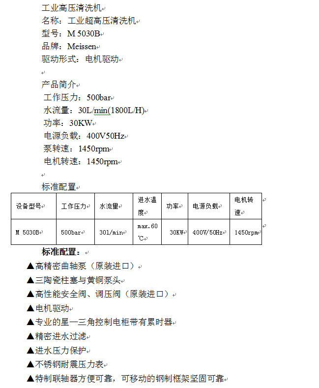 產品名稱:工業級超高壓清洗機M5030B
